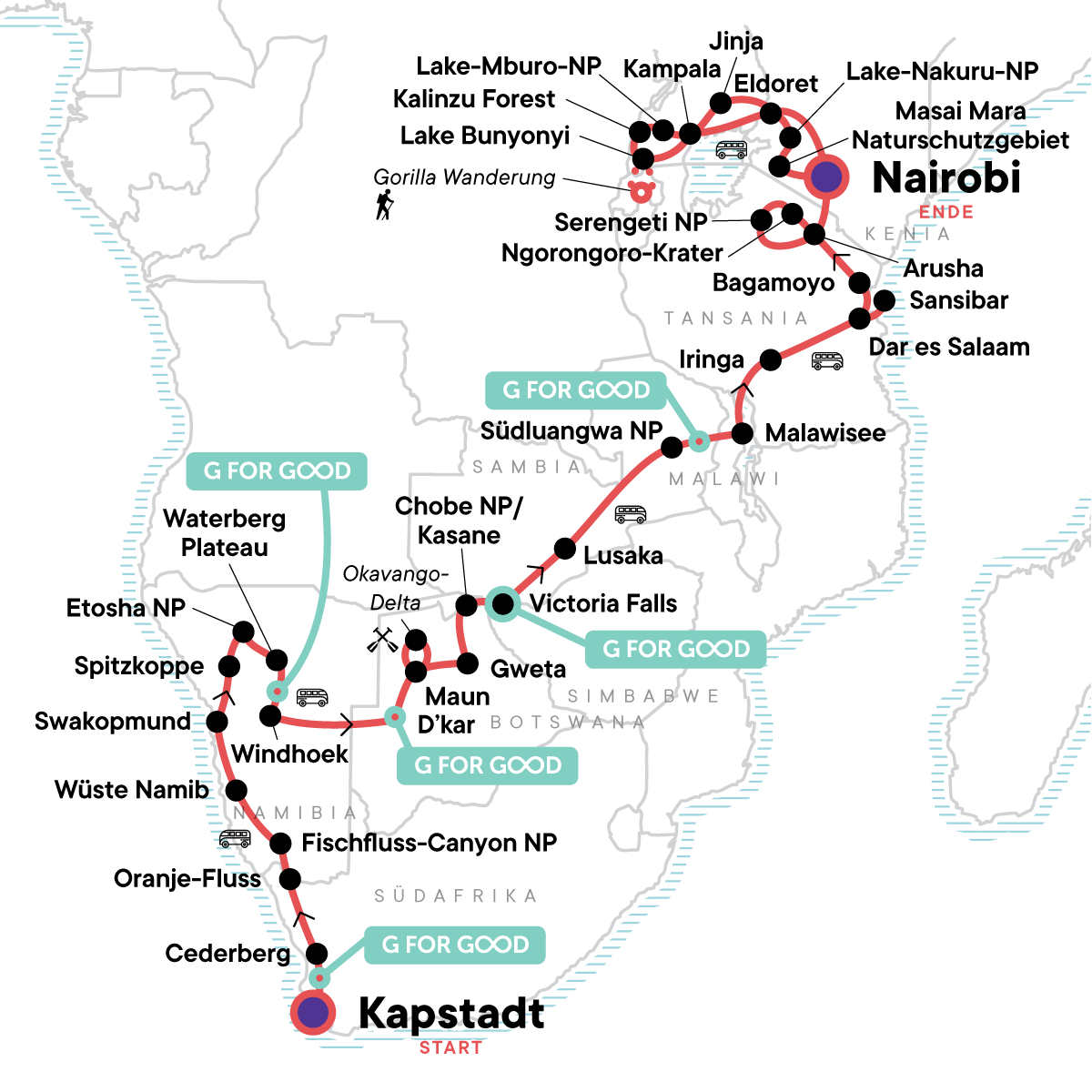 Sure, 55 days might sound like a lot of time, but this once-in-a-life time experience offers you the gift of time in some of the most epic landscapes in the world. See swaths of south and east Africa as you journey by Lando (overland adventure vehicle) across open savanna and by traditional canoe into the Okavango Delta. Track mountain gorillas deep in the Ugandan tropical rainforest and search for the "big five" on safari drive in the Serengeti and listen to the thundering Victoria Falls to get a real sense of how large Africa truly is. Enjoy wilderness camping to bring you even closer to the region's landscapes and wildlife and try not to blink because a jam-packed adventure awaits.