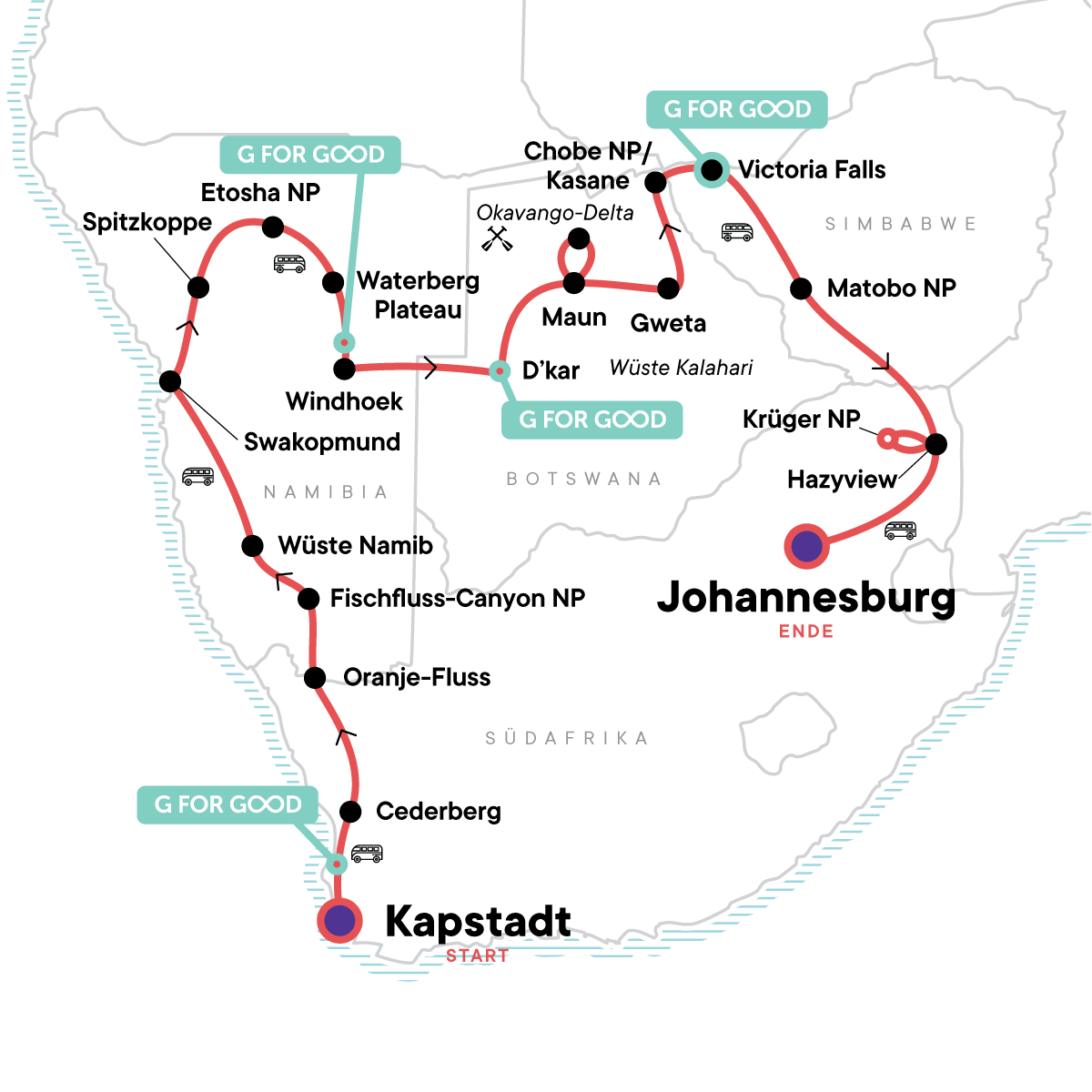 Spend 28 days cruising through Africa in a Lando (overland adventure vehicle) visiting towering sand dunes, deep canyons carved through time, and Etosha, Kruger, and Matobo National Parks for some unforgettable wildlife safari drives. Listen to the thundering roar of Victoria Falls, enjoy traditional dinner and dance, and campouts under a blanket of stars. Think action, adventure, and amazing wildlife encounters in a super continent of diverse ecosystems waiting to welcome you with open arms.