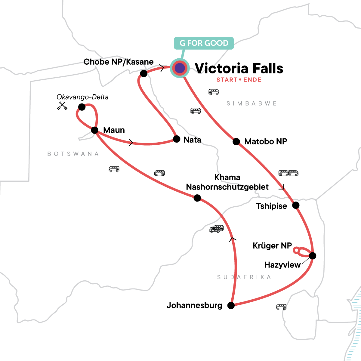 Erlebe Afrika jetzt mit uns auf deine Weise mit diesem erschwinglichen Trip speziell für junge Reisende! Diese 15-tägige Erlebnisreise durch Südafrika, Botswana und Simbabwe bietet Wildtiere, Wildnis und jede Menge Wow. Komm an Bord unseres Lando (Overland-Fahrzeug) und halte Ausschau nach den Big Five im Krüger-Nationalpark, sieh die Victoriafälle und wandere auf der Fährte der Nashörner im Matobo-Nationalpark. Erlebe die Natur pur, wenn du im Zelt übernachtest, am Lagerfeuer Lieder mit den Einheimischen singst und im Mokoro (Einbaum) fährst. In diesen prachtvollen Landschaften gilt: Je mehr Zeit du draußen verbringst, desto besser.