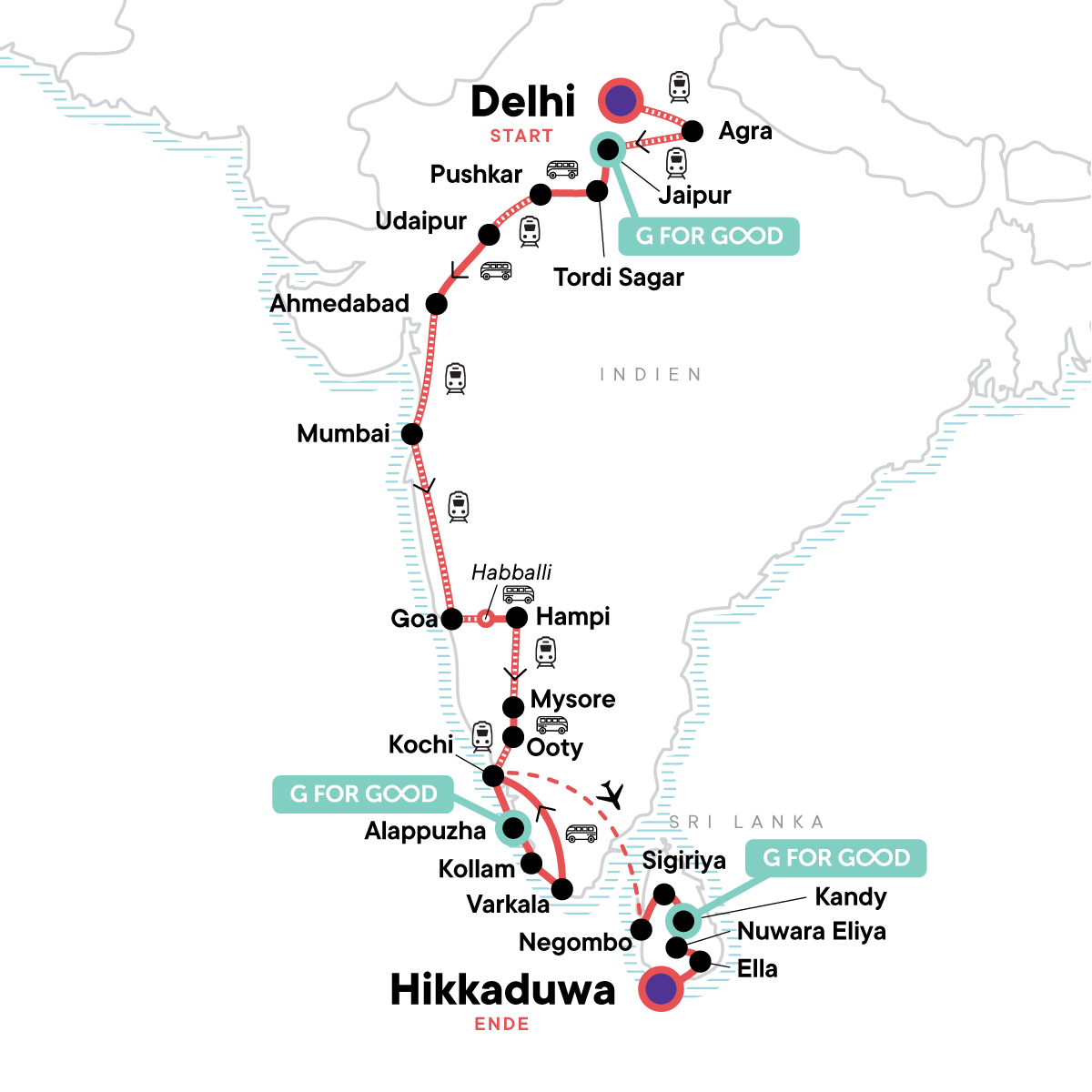 Two incredible countries, one epic adventure. India and Sri Lanka are a perfect match - think rich history, vibrant cultures, mouthwatering cuisine, and landscapes that range from misty highlands to sun-drenched beaches. Kick things off in Delhi before checking off bucket-list icons like the Taj Mahal and Amber Fort. Get a taste of local life with homestays and village visits, explore the buzzing cities of Mumbai and Negombo, and trade cityscapes for rolling tea plantations in Ooty and Nuwara Eliya. And of course, there's plenty of time to unwind - whether it's on Goa's golden beaches or soaking up the coastal vibes in Hikkaduwa. Adventure, culture, and a crew of like-minded travellers - what more could you ask for?